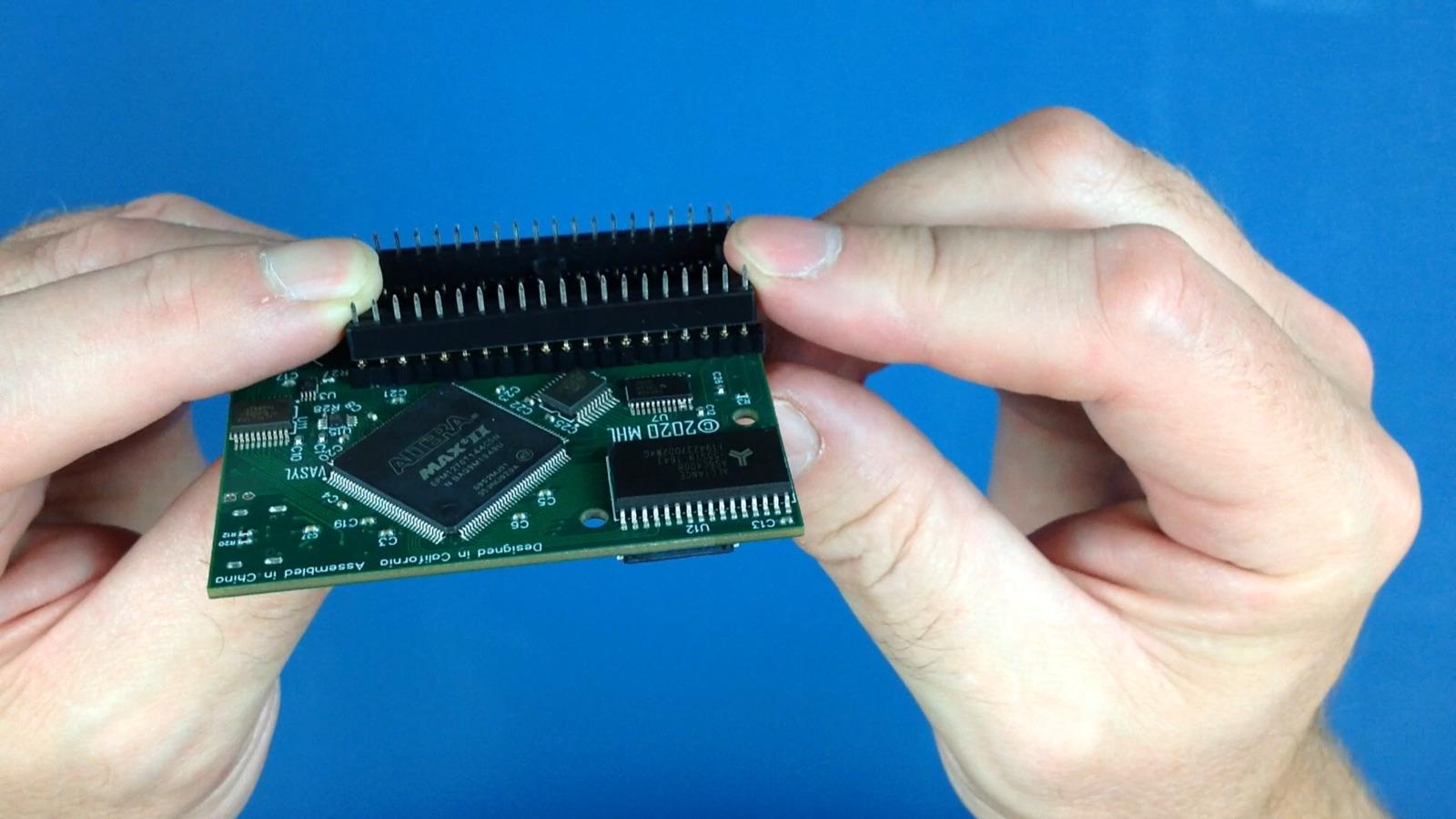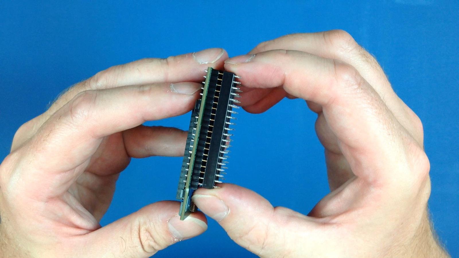All “wide” Commodore 64 boards require that you place the rising and protective socket on the pins sticking out from the bottom of the BeamRacer board. This additional socket not only keeps the BeamRacer unit safely above the computer's mainboard but is also especially chosen to have flat pins, rather than round ones. Thanks to this no additional wear is imposed onto your original VIC-II socket when the expansion is installed.